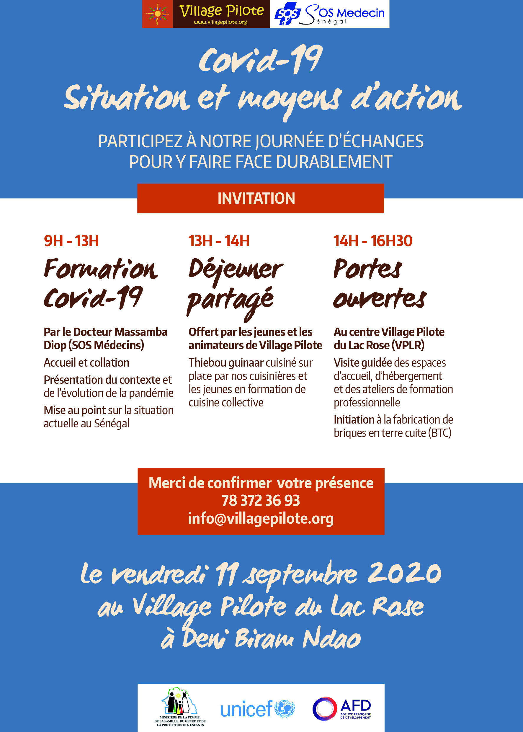 Village Pilote organise une conférence, animée par le Directeur de SOS Médecin : « COVID 19 : situation et moyens d’action », le vendredi 11 septembre 2020, à partir de 9h30, au Village pilote du Lac Rose.