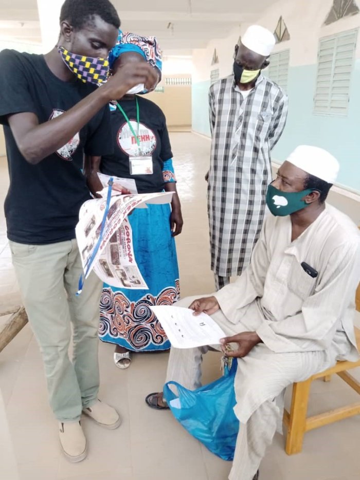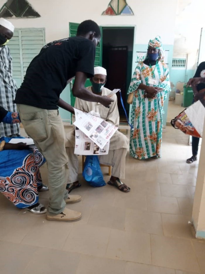 La remise des masques à la population n’est qu’un geste symbolique qui leur permet en réalité de sensibiliser la population à notre passage dans chaque quartier. A cet effet du matériel informatif (affiches, flyers, notices concernant l’utilisation des masques) a été préparé afin de pouvoir diffuser les informations sur les gestes barrières dans de différents quartiers de la ville de Thiès, notamment concernant :