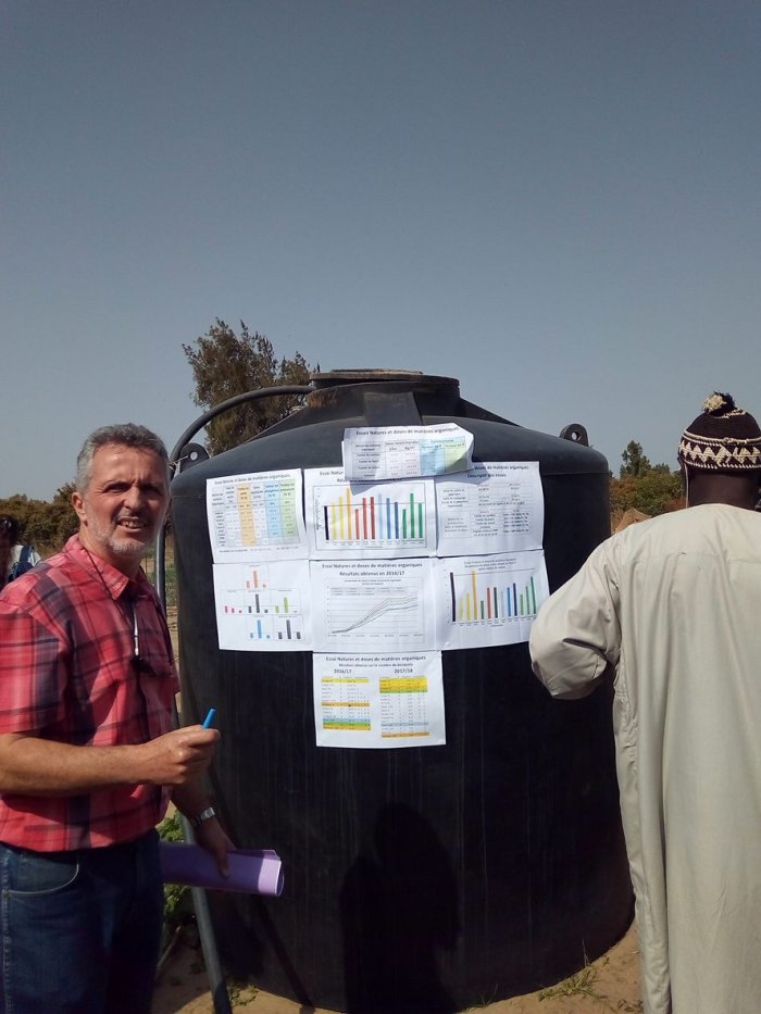 Les membres présents ont découvert un bio digesteur installé par le Programme National de Biogaz domestique du Sénégal (PNB). Ce bio digesteur, similaire à celui le vu à l’Association JAAMBAR au village de Ngueye-Ngueye, a surtout permis de comprendre les activités de recherche menées dans le but d’améliorer les pratiques d’alimentation du biodigesteur et valorisation des biodigestats.